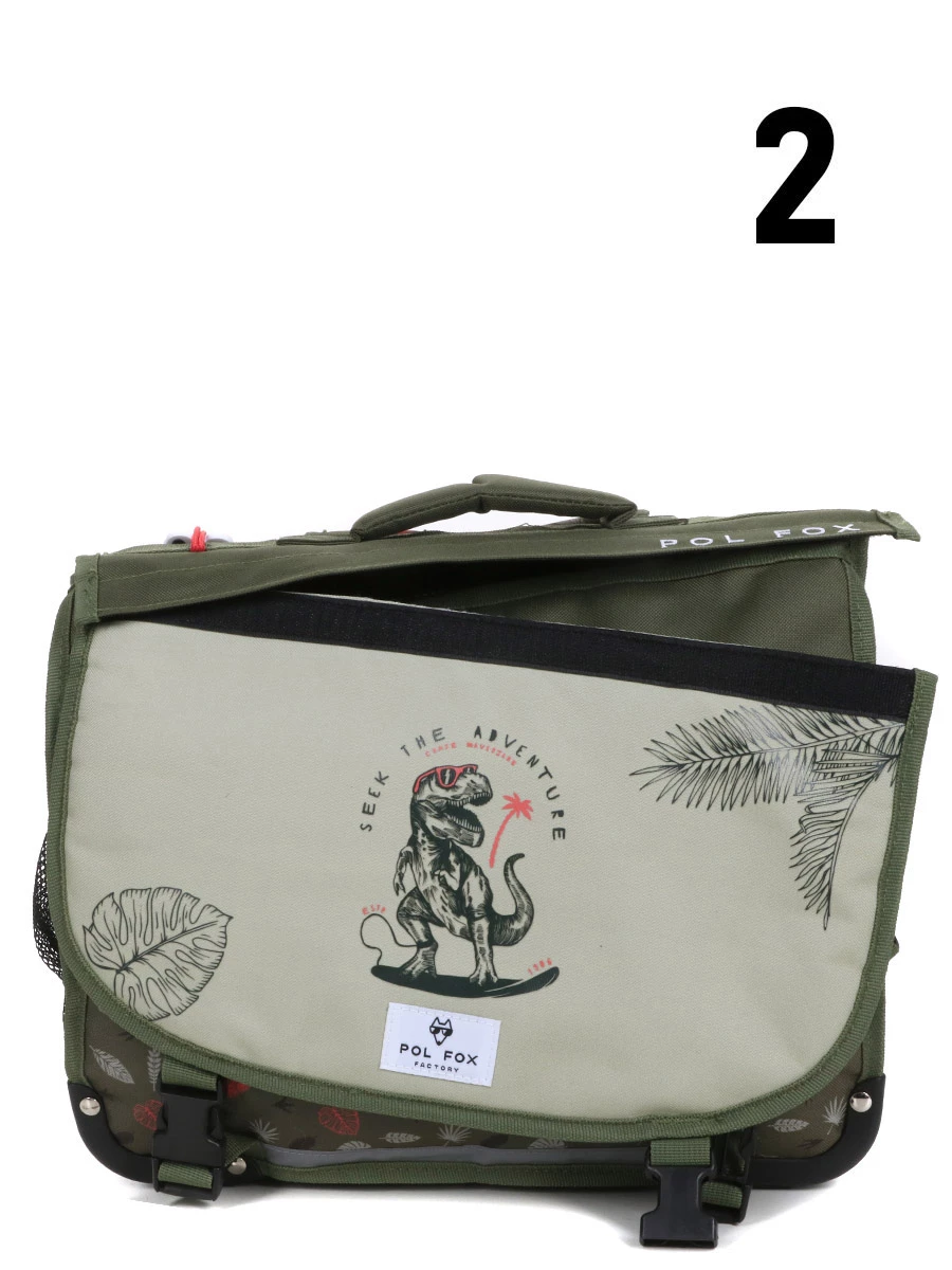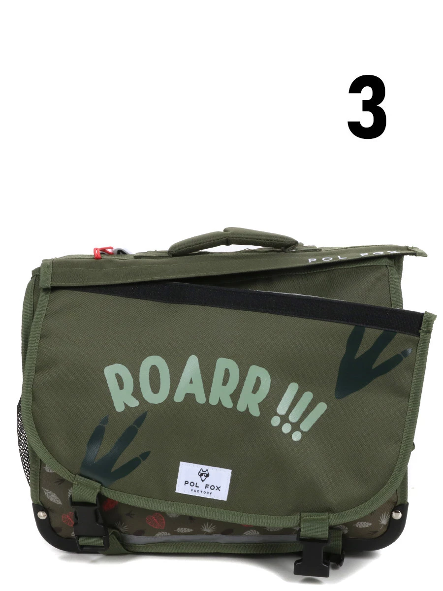 Le cartable Réversible Pol Fox Dino Ride 38 cm fait de chaque journée d’école une aventure pour les petits passionnés de dinosaures. Ses motifs végétaux sur fond kaki évoquent de trépidantes expéditions à travers la jungle tandis que son rabat réversible arbore d’un côté un amusant tyrannosaure et de l’autre son cri inquiétant : « Roarr ! ». Du CP au CE2, il accompagne les enfants avec confort grâce à ses dispositifs ergonomiques et résiste aux plus chahuteurs grâce à ses divers renforts. Intrépidité rime cependant avec sécurité, grâce aux détails réfléchissants appliqués à l’avant, à l’arrière et sur un côté.