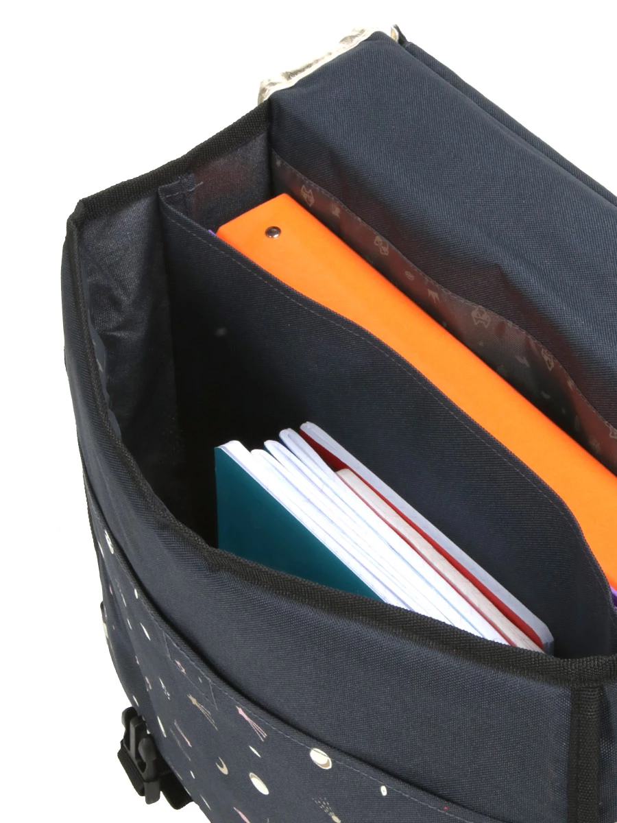 Les deux compartiments du cartable ergonomique Pol Fox Space Girls permettent d’optimiser l’organisation des différents livres et manuels. Pour accéder rapidement au cahier de texte et au goûter par exemple, il possède une poche frontale fermée par une bande velcro. Sur le côté, une poche extensible permet de glisser une gourde pour pouvoir s’hydrater pendant toutes les aventures de la journée.