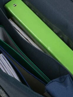 • Comprend plusieurs compartiments pour organiser les fournitures scolaires et une poche latérale pour une bouteille d’eau.