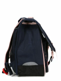 Le cartable Kickers Girl 38 cm réunit tout ce qui fait le charme rétro de la célèbre marque dans une version girly qui devrait faire des jalouses dans la cour de récréation, parmi les jeunes élèves en classes de CP, CE1 et CE2. Son revêtement bleu marine est relevé de finitions en simili-cuir rose, d’un porte-adresse en forme de fleur et de pois dorés sur les poches frontales. Bien conçu, il présente un aménagement très fonctionnel et un système de portage ergonomique. Fabriqué en polyester 900 deniers et renforcé au niveau des angles inférieures et du fond, il offre une bonne résistance aux frottements.
