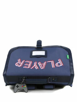 Le cartable Tann’s Colin 38 cm plaît autant aux parents qu’à leurs enfants avec son design qui allie des détails rétro typiques de Tann’s tels que son porte-adresse et autres détails en simili-cuir, son rabat à attache et le camaïeu de bleu de son revêtement, et des décorations en gomme colorées : un porte-clefs en forme de manette accroché à sa poignée, un patch rouge rappelant un personnage de jeu vidéo et l’inscription « Player » qui s’affiche en grand sur son rabat. Ces fantaisies ne manquent pas de séduire les jeunes gamers précoces. Adapté par ses dimensions aux écoliers en classes de CP, CE1 et CE2, il prend soin de leur constitution fragile par sa conception ergonomique. Son organisation intérieure bien pensée facilite les journées studieuses. Fabriqué en polyester recyclé, il entraîne un faible impact environnemental.