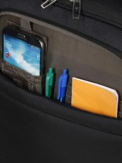 Le sac à dos à roulettes Roncato Joy M dispose d’un compartiment spécifiquement adapté pour emporter du linge. Il est doté de 4 sangles réglables pour maintenir les vêtements bien pliés en place pendant le transport. Ses 2 poches matelassées sont adaptées pour une tablette et un ordinateur jusqu’à 15.6 pouces. Pour les effets personnels, les carnets de note, les revues techniques et les fournitures de bureau en tout genre, il possède en prime 2 poches frontales très spacieuses. Enfin, pour préserver son contenu de l’humidité, il est doté d’une doublure textile et de fermetures à zip étanches.