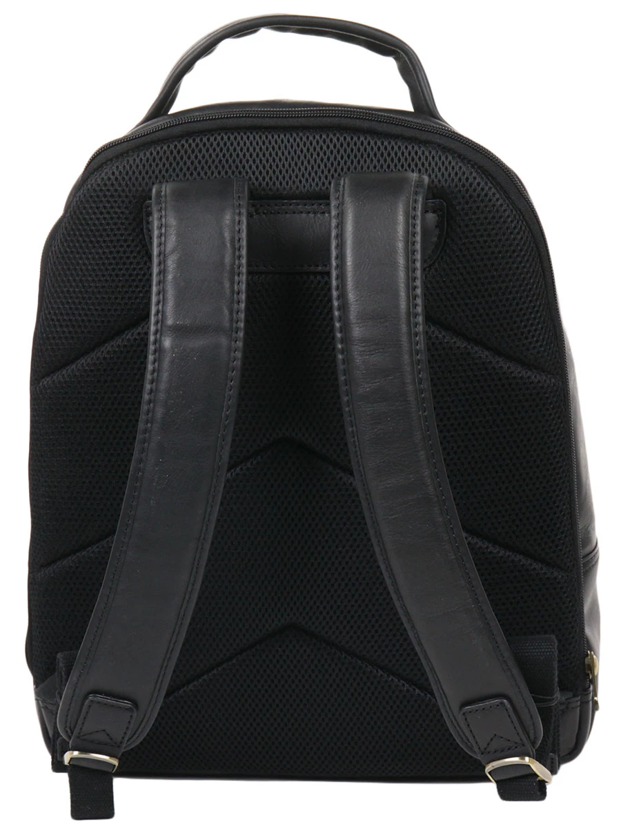 Au dos, on trouve un panneau de renfort en mesh pour un parfait soutien lombaire. Ce sac est aussi équipé de sangles d’épaules ergonomiques et ajustables, d’une poignée de transport supérieure en cuir et de rivets de protection.