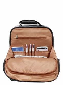 Le second espace de rangement offre, quant à lui, une poche zippée pour le cordon d’alimentation, des porte stylos et 2 poches pour téléphones portables, l’objectif étant de permettre aux utilisateurs de rester organisés en toutes circonstances. Côté extérieur, il se complète par 2 poches frontales facilement accessibles, lesquelles permettent de conserver des affaires importantes à portée de main.