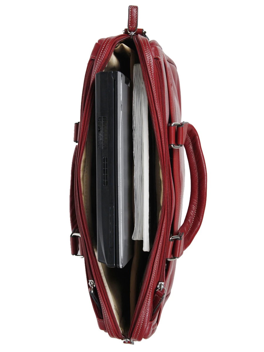 Ce porte ordinateur Katana Allure se déplace avec élégance à la main, à l’aide de ses 2 belles poignées en cuir. Il est aussi possible de le transporter avec confort en travers ou sur l’épaule, avec sa bandoulière ajustable, amovible et renforcée en cuir.