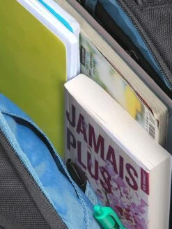 La sacoche 2-en-1 Thule Accent réserve son compartiment arrière à un ordinateur jusqu’à 15.6 pouces et une tablette jusqu’à 10.5 pouces, transportés en toute sécurité dans leur poche moussée respective. Le compartiment principal loge les dossiers, un vêtement de rechange et d’autres objets encombrants dans son espace central. Les parois du compartiment sont pourvues de multiples dispositifs de rangement : deux poches zippées où glisser par exemple un câble d’alimentation, des clefs ou un étui à lunettes, une poche plate en maille filet pour de petits accessoires, des poches pour cartes, trois passants pour stylos et une poche plate pouvant accueillir une batterie externe (non fournie). A l’avant est aménagée une poche zippée à coque rigide, idéale pour protéger par exemple le téléphone ou des lunettes de soleil. Notons que les fermetures sont à glissière inversées pour mieux préserver le contenu du sac de l’humidité.