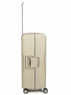 La valise Jump Maxlock glisse avec fluidité sur ses 4 doubles roulettes pivotantes à 360°. Pour la tracter à côté ou derrière soi, il suffit de saisir sa poignée télescopique double canne. Dessus, une poignée souple permet de la tenir à la main avec confort pour franchir quelques marches. Elle se ferme à l’aide d’un système à attaches à cadre 3 points verrouillé par une serrure TSA à code. Enfin, pour lui assurer une bonne stabilité quand elle est posée sur la tranche, elle est dotée de renforts latéraux.