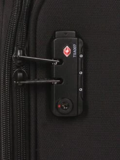Avec son trolley réglable à double tube et ses deux roues intégrées, la valise Jump Moorea 2 se tracte sans effort. Pour la saisir à la main et monter les trottoirs et les escaliers, on apprécie l’ergonomie de sa poignée haute renforcée de mousse. Une poignée en plastique rigide située sous le fond permet également de la soulever à l’horizontal pour la poser par exemple sur un porte-bagages. Un renfort protège son revêtement lors du roulement et des pieds assurent sa stabilité tout en la préservant de la saleté du sol. Côté sécurité, une serrure TSA à code sécurise la fermeture à glissière de son compartiment tandis que des anneaux permettent de sécuriser par cadenas (non fournis) ses poches frontales.