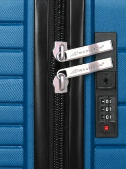 La valise Madisson Naxos se tracte agréablement à l’aide de sa poignée télescopique double canne à position ajustable et de ses 4 roues doubles multidirectionnelles. Sur le dessus et le côté, 2 poignées souples facilitent les manipulations pour la ranger dans le coffre d’un véhicule, par exemple. Pour garder à bonne distance les mains indélicates des pickpockets, il est possible de verrouiller l’accès à son contenu avec sa serrure à code encastrée.