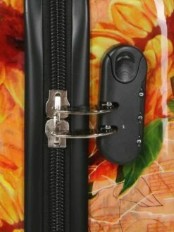 La valise rigide Madisson Tournesol se déplace avec aisance grâce à ses quatre roues multidirectionnelles et sa poignée rétractable réglable sur plusieurs niveaux. Le portage à la main est lui aussi facilité par la poignée ergonomique située sur le haut de la valise. On l’utilise notamment pour monter des escaliers ou pour saisir la valise sur le tapis à bagages de l’aéroport. Côté sécurité, une serrure à combinaison sert à bloquer les tirettes de la fermeture éclair afin d’empêcher tout vol.