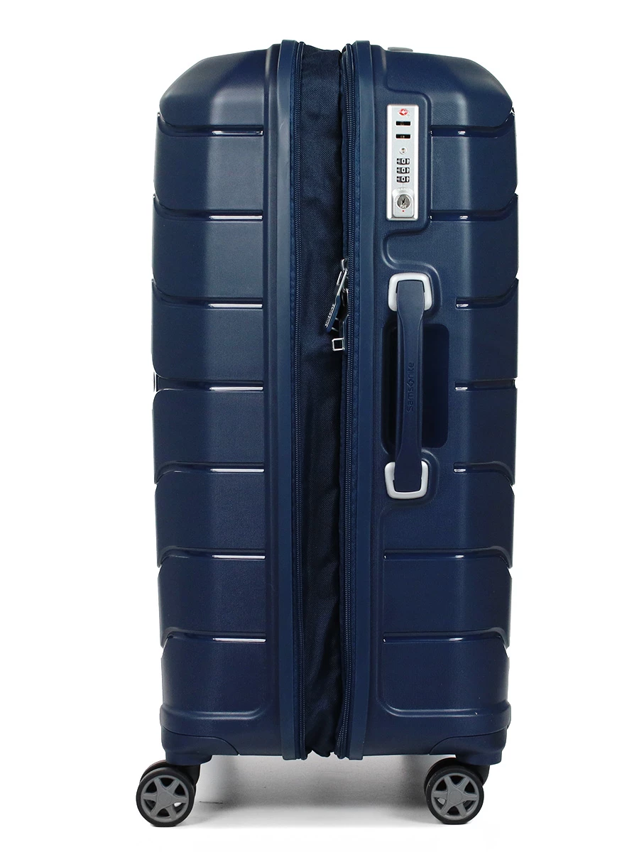 La valise rigide Samsonite Flux peut en effet gagner 10 L de volume supplémentaire avec son soufflet d’extension.