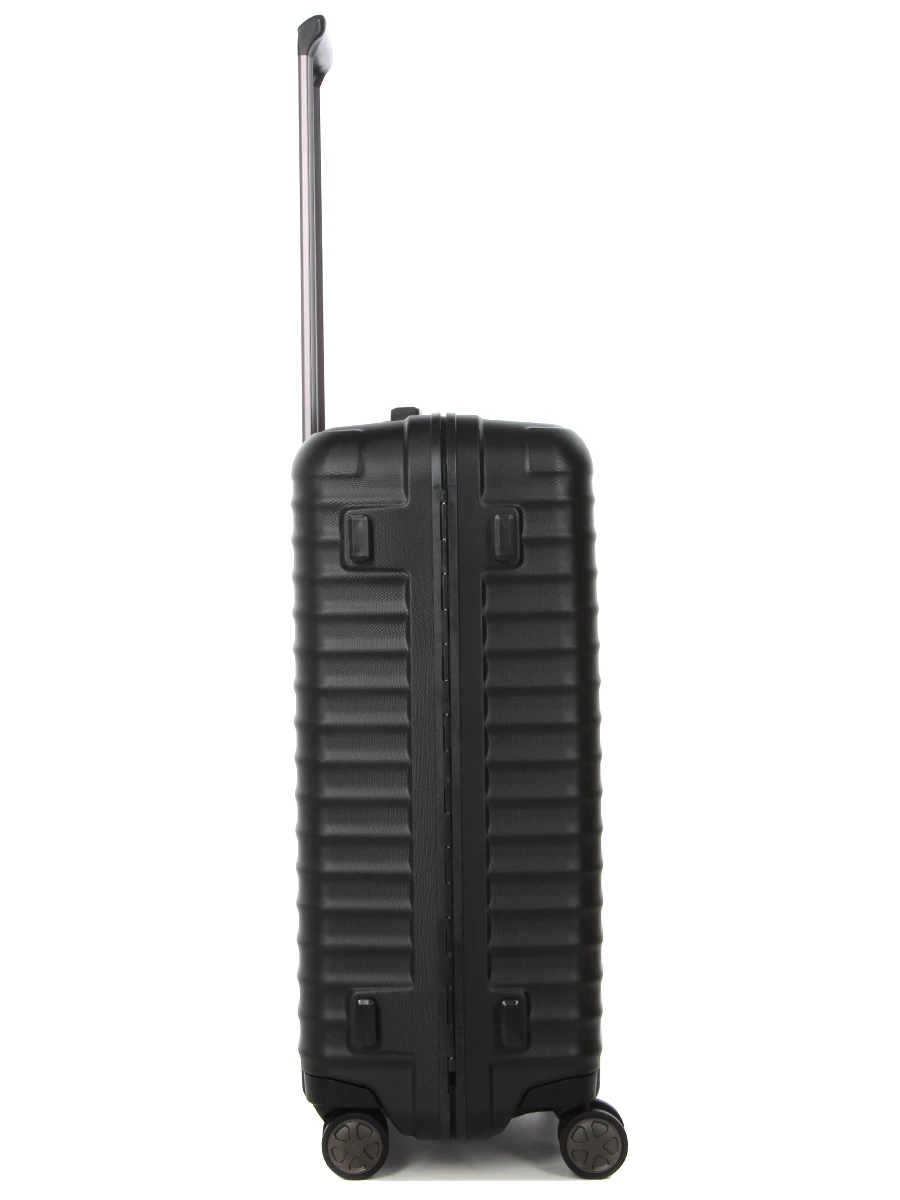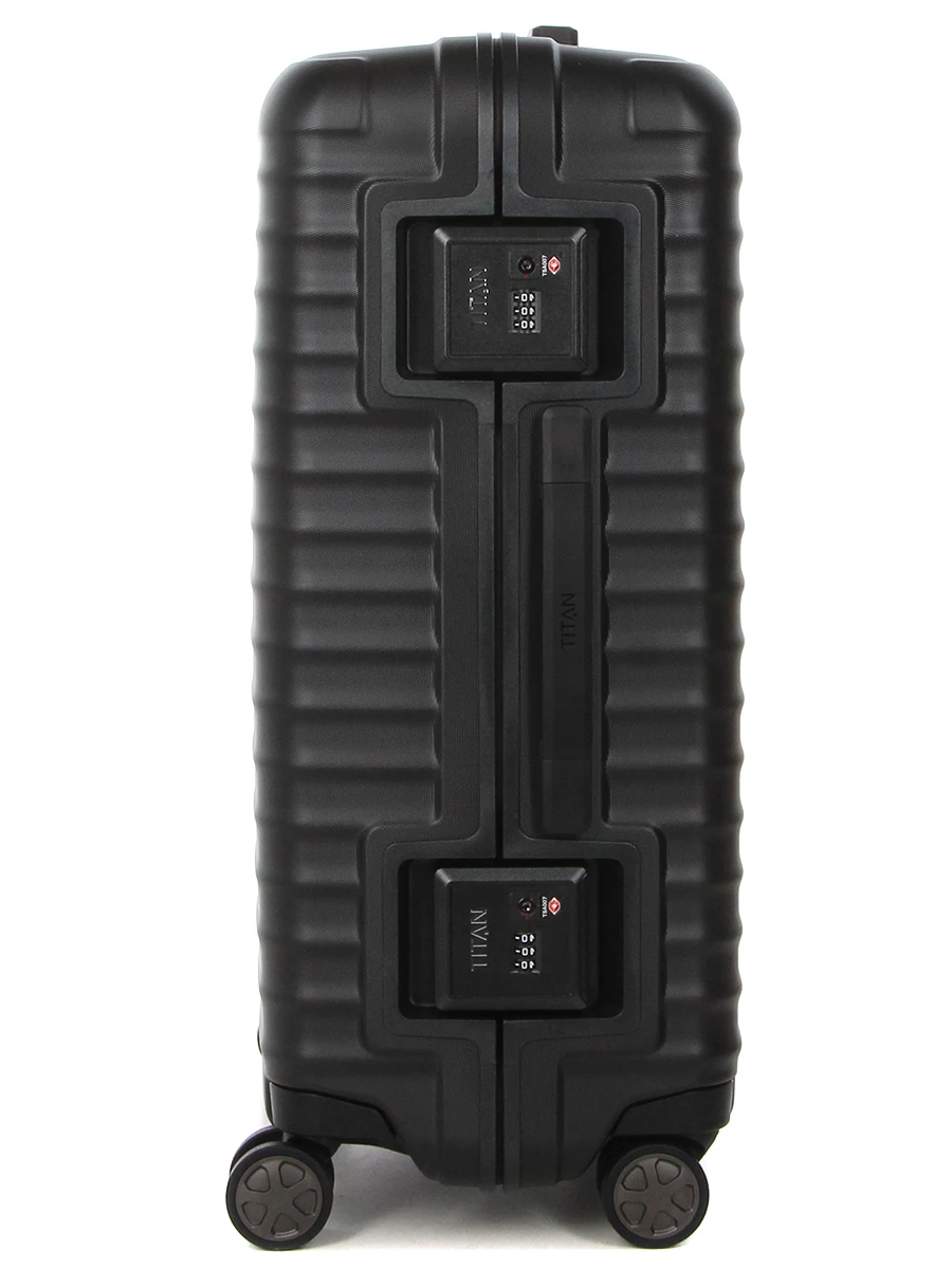 La valise Titan Litron Frame M glisse silencieusement et en douceur sur ses 4 doubles roues multidirectionnelles. Sa poignée télescopique double canne est ajustable en plusieurs positions pour plus de confort. Pour faciliter son portage dans les escaliers, elle est également munies de 2 poignées. Sur le côté, des patins rigides lui octroient une bonne stabilité lorsqu’elle vient à être posée sur la tranche. Son dispositif de fermeture à attaches à cadre 2 points sécurisés par 2 serrures TSA à code sont l’assurance de voyages sereins en toutes circonstances.